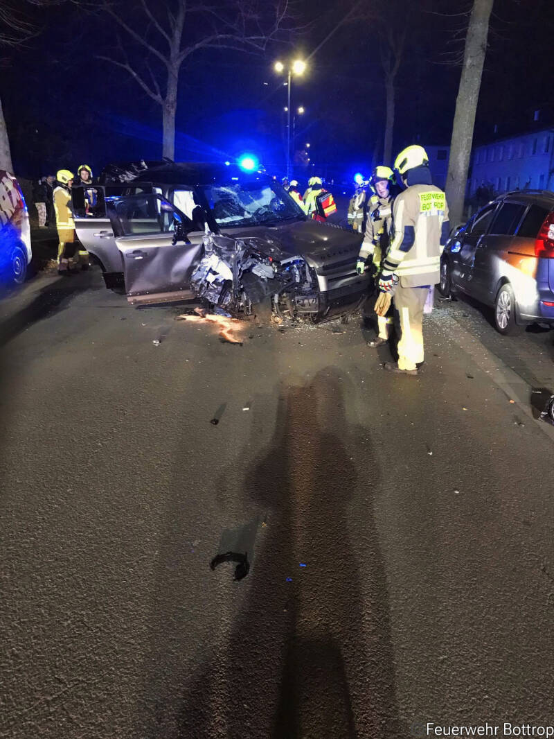 Gegen halb zwei Uhr morgens wurde die Feuerwehr Bottrop zu einem Verkehrsunfall auf der Johannesstraße alarmiert. Die Feuerwehr rückte mit dem Hilfeleistungszug, der Ortswehr Boy sowie zwei Rettungswagen und einem Notarzt zur Einsatzstelle aus. Vor Ort wurde ein verunfallter PKW mit zwei verletzten Personen vorgefunden. Beide Personen wurden durch den Rettungsdienst versorgt und im Anschluss ins Krankenhaus gebracht. Die Feuerwehr streute ausgelaufene Betriebsmittel ab-Insgesamt waren 29 Einsatzkräften vor Ort.