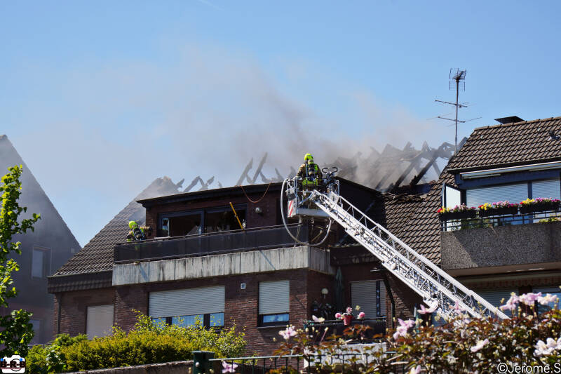 Am heutigen Dienstag, gegen 12:30 Uhr, meldeten mehrere Anrufer über den Notruf 112 einen brennenden Dachstuhl in einem Mehrfamilienhaus im Bottroper Stadtteil Fuhlenbrock. Beim Eintreffen der ersten Einsatzkräfte stand bereits ein Großteil des Dachgeschosses in Flammen. Glücklicherweise befand sich nur ein Bewohner im Gebäude, der dieses unverletzt verlassen konnte.