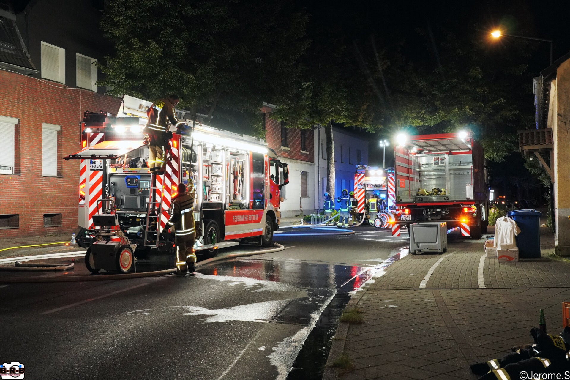 Mittwochnacht, gegen 02:00 Uhr, meldeten Anrufer der Leitstelle der Feuerwehr Bottrop über den Notruf 112 massiven Flammenschein im Hintergelände am Nordring. Bei Eintreffen der ersten Einsatzkräfte brannten ein Schuppen, ein Holzunterstand, Gartenpavillions und ein Kleintransporter. Das Feuer drohte auf ein Wohnhaus und auf ein Wohnmobil überzugreifen. Weder im Wohnhaus noch im Wohnmobil befanden sich Personen. Durch eine massive Brandbekämpfung mit mehreren Strahlrohren konnte ein Übergreifen auf das Wohnhaus und auf das Wohnmobil verhindert werden. Das Wohnmobil wurde allerdings durch die große Wärmeeinwirkung beschädigt.