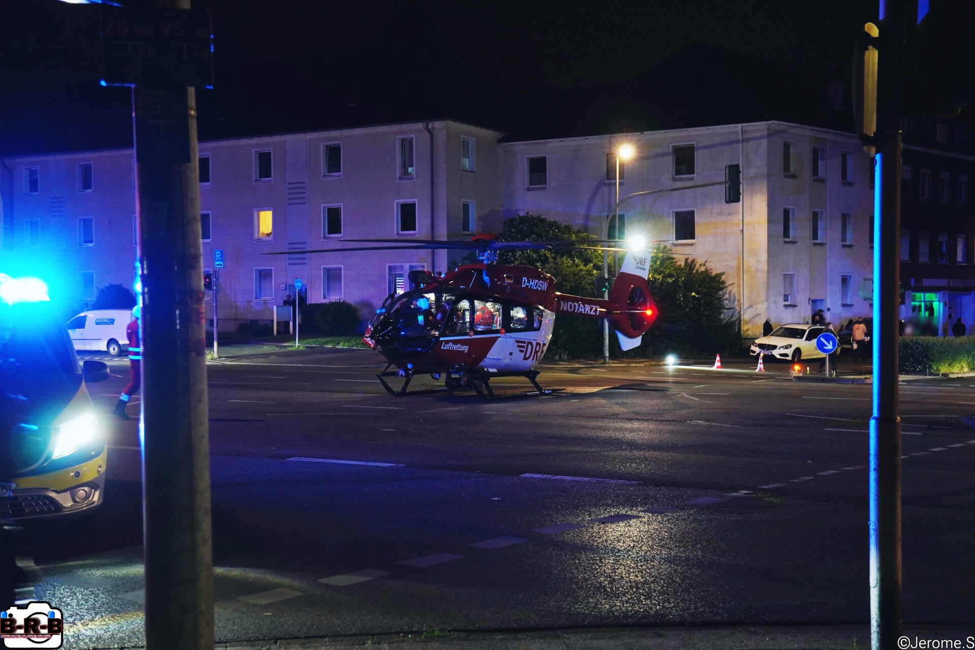 Wegen der Schwere der Verletzungen und der notwendigen Maximalversorgung wurde ein Rettungshubschrauber angefordert. Dieser landete wenig später auf der Kreuzung Essener Straße / Freiherr-vom-Stein-Straße. Die Polizei sperrte den Bereich weiträumig ab und sicherte die Landestelle mit zahlreichen Einsatzkräften ab.
