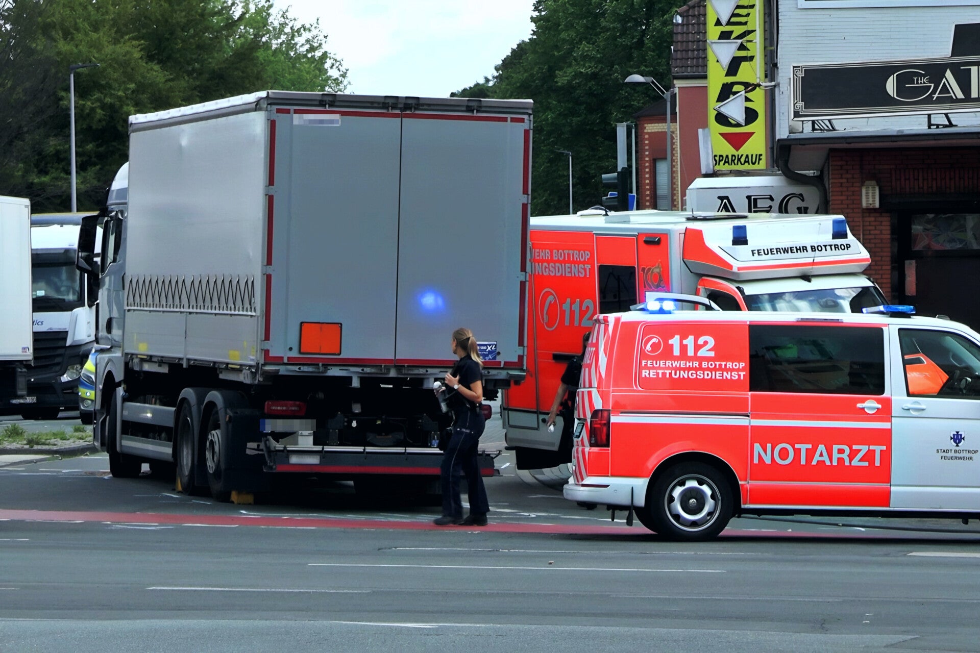 Auch der am Unfall beteiligte Lkw-Fahrer sowie ein weiterer Augenzeuge wurden durch Notfallseelsorger betreut. Während des gesamten Einsatzes, der rund eineinhalb Stunden dauerte, war die Kreuzung vollständig gesperrt. Der Lkw musste abgeschleppt werden. Die Freiwillige Feuerwehr Bottrop-Altstadt stellte währenddessen den Grundschutz für das Stadtgebiet sicher.